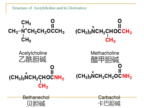 2、贝胆碱: 选择性作用M受体、可用于术后气胀、胃滞留等。