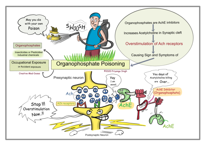 人工合成的有机磷酯类化合物,共价结合AChE酶,使其失去活性。