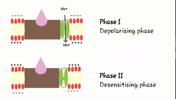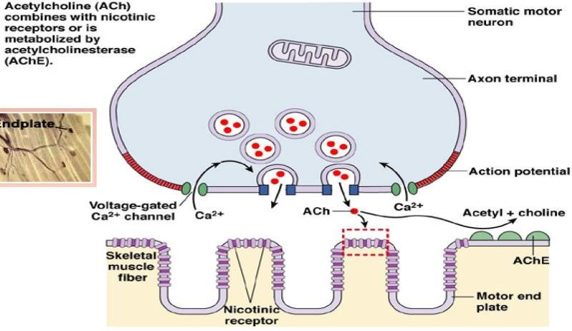 ● NM受体不能对ACh起反应, 钠离子通道被阻断,除极化转变为复极化。